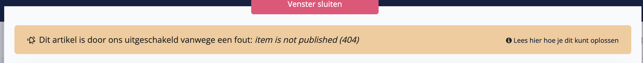 Dan hebben we van Bol een foutmelding ontvangen dat je artikel ten tijde van de check niet gepubliceerd was. Artikelen worden op dat moment uitgeschakeld om checks te besparen. Na een week schakelen we het artikel automatisch weer in voor de checks.